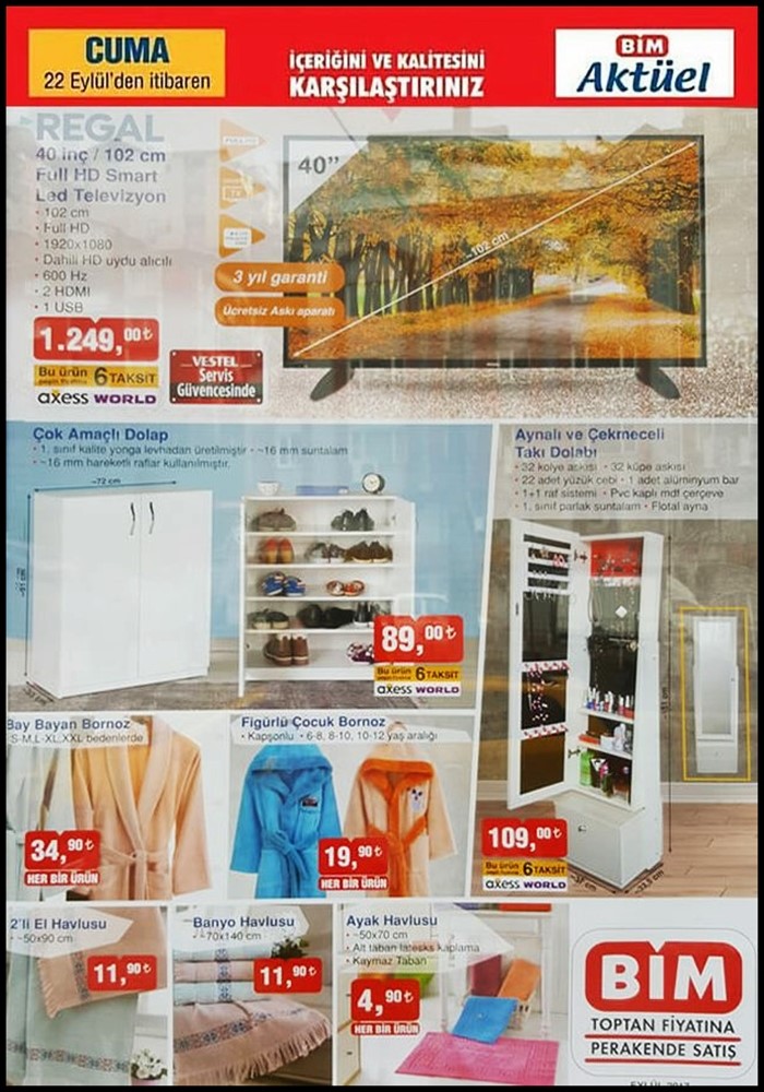 Bim market 22 Eylül 2017 tarihinde fevkalade etiket fiyatlarıyla satışa çıkardığı ürün kataloğu sizler için yayınlandı. Zengin ürün çeşitlerinin yer aldığı Bim mağazalarına uğramayı unutmayın.