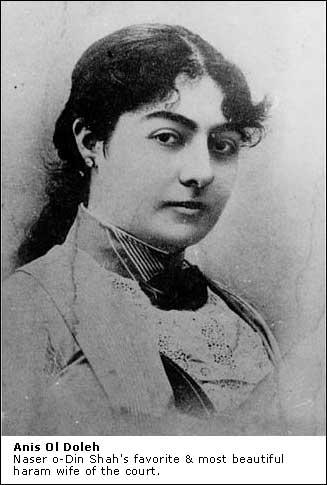 3.000 yıllık İran devletinin en uzun saltanatı olan Nasıreddin Şah’ın 25 karısından biri olan Anis el-Doleh da dönemin gözdelerindendi. Sanıldığı gibi 145 kişiden evlilik teklifi aldığı, ve kendisine aşık olup reddedilen 13 kişinin intihar ettiği gibi bir bilgi, tarihi belgelerde yer almasa da haremin gözdelerinden olduğu biliniyor.