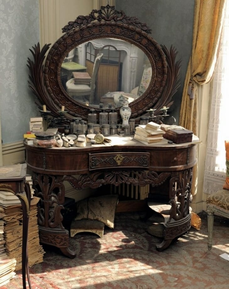 Makyaj masası sahibini beklercesine bir haldeydi. Fırçalar, makyaj malzemeleri ve parfüm şişeleri kullanılmamıştı.