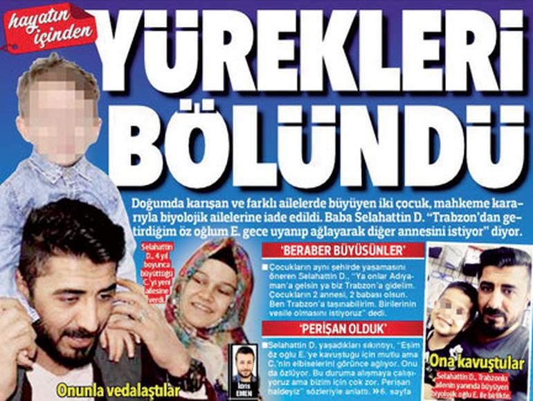 Hastanede karışan ve 4 yıl sonra mahkeme kararıyla biyolojik ailelerine iade edilen E. ve C. için aileler aynı şehirde yaşama kararı alınca Trabzonlu aile Adıyaman’a taşındı. Aynı mahallede beraber oynayan E. ile C.’nin bundan sonra birlikte büyüyeceğini söyleyen Adıyamanlı Selahattin D., “Aynı şehirde yaşadığımızdan beri her iki aileyi de gördüğü için çocukların psikolojisi düzelmeye başladı. Çocukların iki ailesi oldu. Her iki aile arasında ayrım yapmıyorlar, iki ailelerini de çok seviyorlar. Çocuklar beraber büyüyecek” dedi.