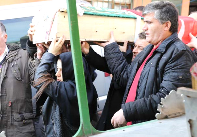 Kızlarının tabutlarını omuzlayarak musalla taşına kadar taşıyan anne, boynuna kızının emziğini taktı, cenaze töreninde en önde saf tuttu.