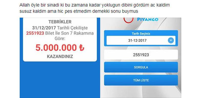Milli Piyango yılbaşı özel çekilişinde 5 milyon liralık ikramiyenin isabet ettiği isimlerden Ordulu TIR şoförü Mutlu Kaya oldu.