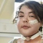 7 hafta tedavi gördükten sonra kanser temizlenmesine rağmen 4 ay sonra geri döndü. Gırtlağı alınan 27 yaşındaki kadının boğazı şiş kaldı ve belki de hiç konuşamayacak.