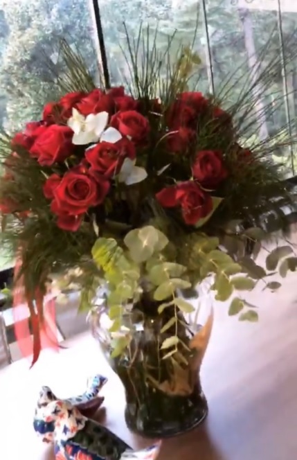 Ağaoğlu, sevglisine hediye olarak kocaman kırmızı gül buketi aldı.