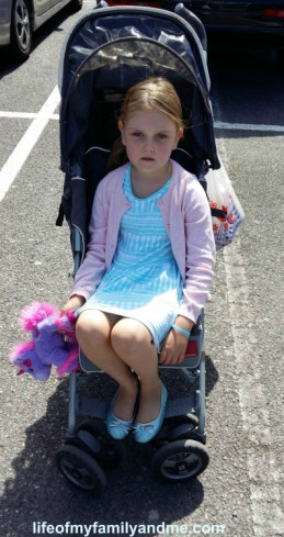 Kızımın pusette oturmasının (ve aslında pek de mutlu görünmemesinin) sebebi, eklem hipermobilite sendromu yaşıyor olması. Normalden daha fazla yürüdüğünde ya da hava aşırı sıcak olduğunda alt bel bölgesi ağrıyor. Bacakları, ayak bilekleri ve ayakları çok acı çekiyor. Ve bu yüzden, kucağa alınma ihtiyacı duymadan yürüyemez hale geliyor. Kucağıma bile alsam, onu rahat taşıyabilmem için bacaklarını belime dolayamıyor, çünkü o sırada bacaklarında o gücü bulamıyor. Ayrıca, dürüst olmam gerekirse, benim belim onu uzun süre taşımaya dayanamıyor. Kendini daha iyi hissedene kadar ağrı kesici ve anti-inflamatuar ilaçlar kullanacak.
