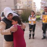 Ambulansta sağlık kontrolleri yapılan küçük kız, işten gelen annesi Emine Kuş’a teslim edildi. Birbirlerine sarılan anne kız göz yaşlarına boğuldu. Sağlık görevlileri de korkan anne ve kızı teselli etti.