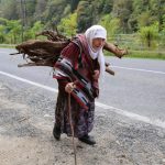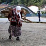 Rize’nin İkizdere ilçesi Güneyce Köyü’ndeki evinde tek başına yaşayan 90 yaşındaki Fatma Yılmaz, kışlık yakacak ihtiyacı için sel sularının sürüklediği odunları topluyor.