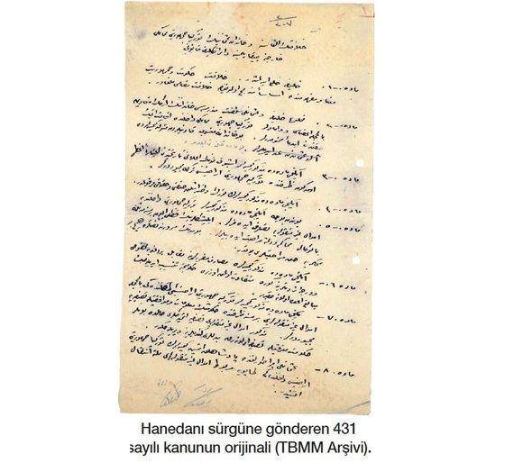 Türkiye Büyük Millet Meclisi’nin o gün kabul ettiği 431 sayılı kanunla Osmanlı Hanedanı’nın bütün mensuplarının Türkiye sınırları dışına çıkartılmasına karar verilmiş, memleketten ayrılmaları için hanedanın erkek mensuplarına 24 saat, kadınlara ise on gün tanınmıştı.