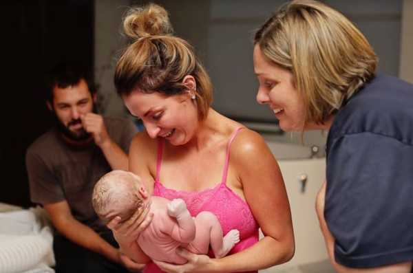 Shayna, bebeği Aimee ve Jake’in kucağına vermeden önce bir süreliğine elini sıktı miniğin.