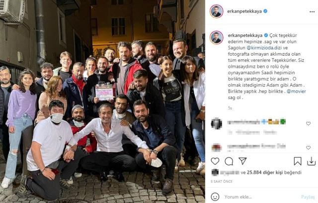 Kırmızı Oda’nın yeni bölüm fragmanında yer almayan Erkan Petekkaya, daha dizinin yeni bölümü yayınlanmadan sosyal medya hesabından paylaşım yaparak ayrıldığını duyurdu. Set ekibiyle çektirdiği bir fotoğrafı paylaşan oyuncu, “Çok teşekkür ederim hepinize. Sağ ve var olun. Sağ olun Kırmızı Oda ve fotoğrafta olmayan, aklımızda olan tüm emek verenlere teşekkürler. Siz olmasaydınız ben o rolü öyle oynayamazdım. Sadi hepimizin birlikte yarattığı bir adam . O olmak istediğimiz adam gibi adam. Birlikte yaptık, hep birlikte” ifadelerini kullandı.