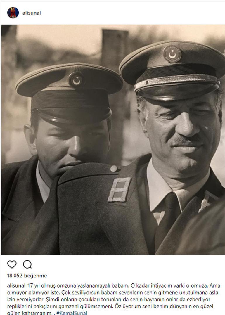Kemal Sunal’ın oğlu Ali Sunal babasının ölüm yıldönümünde bu mesajı paylaştı: 17 yıl olmuş omzuna yaslanamayalı babam. O kadar ihtiyacım varki o omuza. Ama olmuyor olamıyor işte. Çok seviliyorsun babam sevenlerin senin gitmene unutulmana asla izin vermiyorlar. Şimdi onların çocukları torunları da senin hayranın onlar da ezberliyor repliklerini bakışlarını gamzeni gülümsemeni. Özlüyorum seni benim dünyanın en güzel gülen kahramanım…