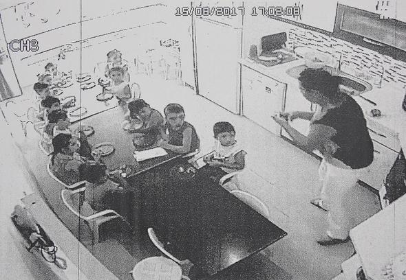 Bilirkişilerin incelediği görüntülerde, okuldaki çocukların olanları fark etmeyip yemek yedikleri, personelin ise büyük telaş yaşadığı yer aldı.