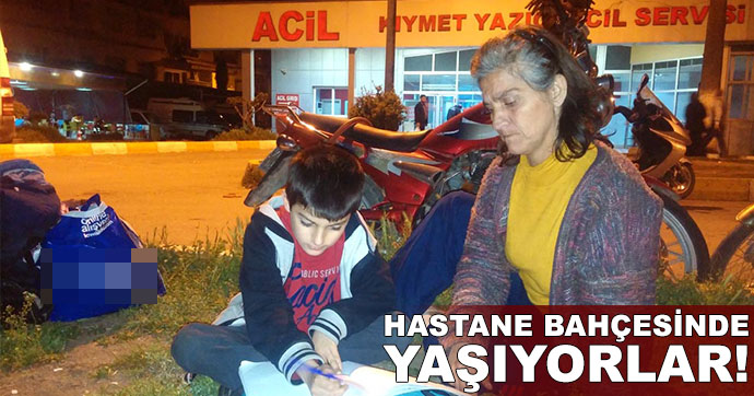 HATAY’ın İskenderun İlçesi’nde 43 yaşındaki Zeynep Karaoğlan, 9 yaşındaki oğlu Eren ile İskenderun Devlet Hastanesi’nin bahçesinde yatıp kalkıyor.