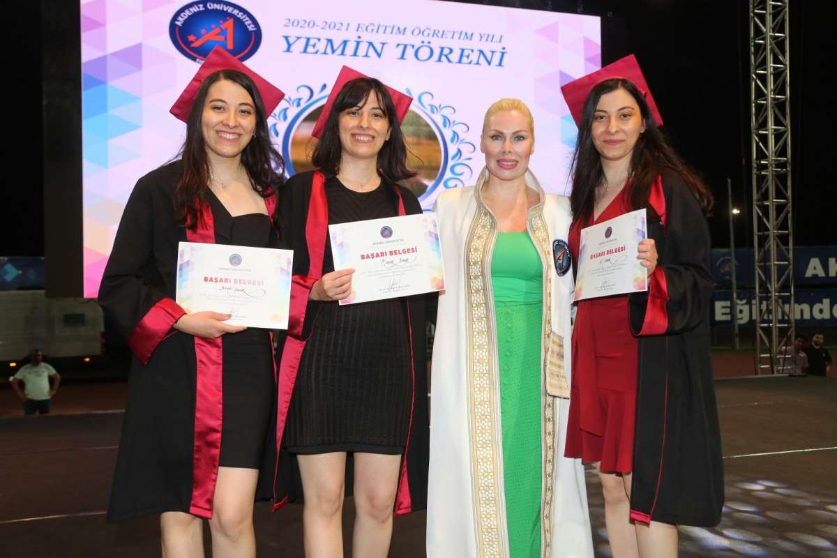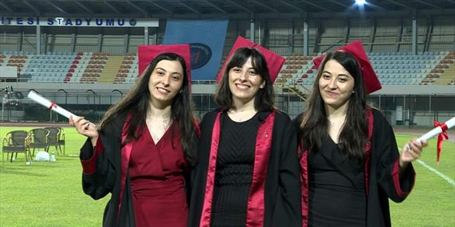 Mezunlar arasında yer alan 24 yaşındaki üçüzler Deniz, Başak ve Aslı Kozak ilgi odağı oldu.