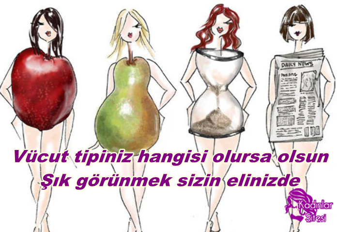 Farklı Vücut Tiplerine Farklı Stil Hileleri Stil sahibi kadınların ilk kuralıdır, vücudunu tanıyıp, vücut şekline göre giyinmek. Kendi stilini ve giyim tarzını oluşturabilmenin ilk koşulu kendini ve vücudunu tanımaktan geçiyor. Vücut tipinizi tanıyorsanız, vücut tipinize uygun stil hilelerine yakından bakalım. Elma tipi giyim hileleri Elma tipi vücudu olan kadınların kilosu genelde göbek bölgesinde yer almaktadır.