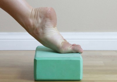 Egzersize bloğun önünde durarak başlayın. Sonra ayak parmaklarıyla bloğun üstünde adım atın. Aynı ayağa yaslanarak ayağının altını gerginleştirmeniz gerekir.