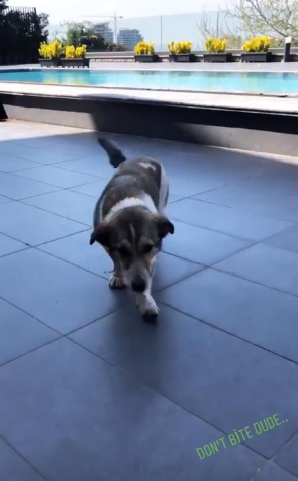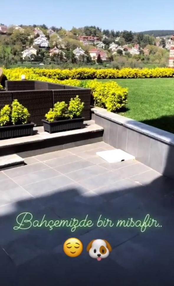 Ünlü oyuncu evinin bahçesine giren bir köpeği sosyal medya hesabından ‘bahçemizde bir misafir’ notuyla paylaştı.