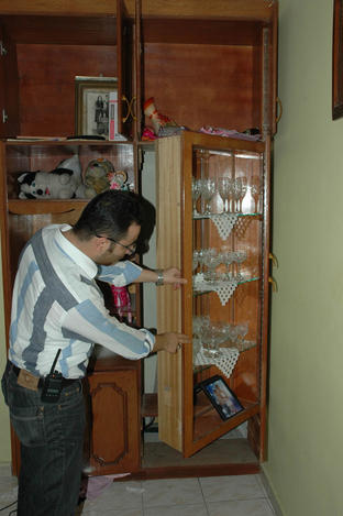 Polis Levent D.’nin evinde arama yaparken 14 yaşındaki kızı Ş.D. ve Levent D.’yi bulamamış, çocukların bakışından kapının girişindeki vitrinden şüphelenmişti. Polis vitrinin kalınlığını koluyla ölçmüş, aynalı kısmının daha geniş olduğunu görmüş, kulağını vitrine dayadığında ise nefes alıp vermeler olduğunu tespit ettikten sonra vitrinin kapağını açtığında gizli bölme olduğunu belirlemişti. Vitrinin içinden de Levent D. ve 14 yaşındaki kızı çıkmıştı. Levent D. ve kızı “Fuhuş vaadiyle yağma” suçundan adliyeye sevk olmuş, baba tutuklanırken kızı ev hapsi cezası almıştı.