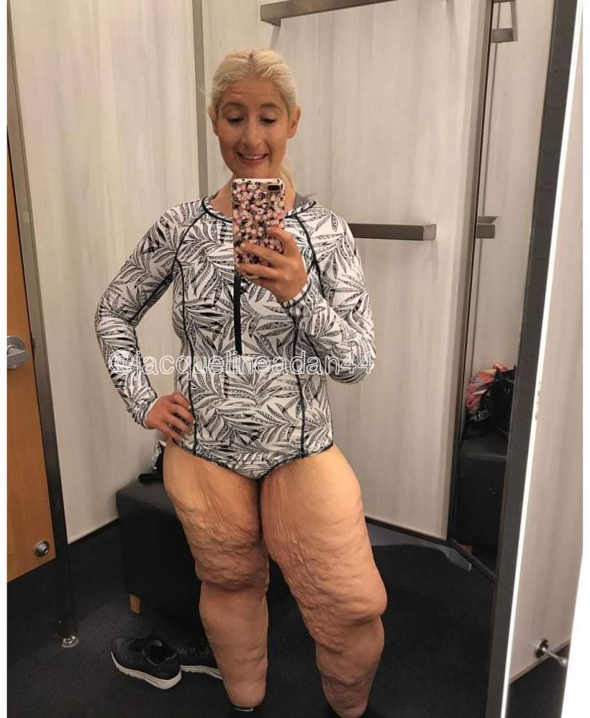 Çok hızlı kilo vermeniz halinde cildiniz buna ayak uyrudamıyor. Vücudunuzda çatlaklar ve sarkıklıklar oluşuyor. Aynı şey Jacqueline’in başına geldi. Kilo verdikçe cildi sarkıklar oluşmaya başladı.