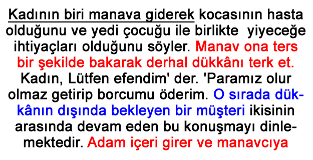 Küstah bir spiker vardır ve Barış Manço ile dalga geçmektedir… Sürekli, “işte Türk, yani barbar, vahşi vs…” demektedir… Barış Manço daha fazla dayanamaz ve spikere “yanınızda kağıt para var mı?” diye sorar! Spiker de,
