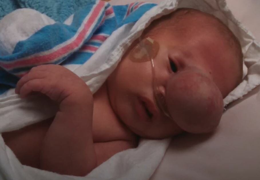 Ebeveynleri ultrasonda bebeğin suratının ortasında bir yumru oluştuğunu görmüştü ancak bu kadar büyük olduğunu bilmiyorlardı.