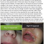 “Bu gönderiyi paylaşmayacaktım ancak yakınlarda bir anne grup konuşmasında paylaşınca ebeveynlerin çocukları etraftayken şarjörleri dışarıda bırakmanın tehlikeleri konusunda iki defa düşünmediklerini fark ettim. 28 Eylül’de, 19 aylık kızım telefon şarjörümü ağzına soktu. Doktora gittik ve elektrik yanması olduğunu onayladı. O bölgeyi yalayabildiği için de üzerine bir şey koyamayacaklarını söyledi. Başka bir zaman şarjörüm onun ulaşabileceğini noktada prize takılı olmazdı ancak o gün yaşanan bir sürü şey yüzünden yerini değiştirmeye vaktim olmadı. Yanması yalnızca birkaç saniye sürdü. O ana kadar hiç ağzına sokmaya çalışmamıştı hatta hiç oynamamıştı bile aletle. Yerinden kaldırılmadığı tek gün ağzına soktu ve ciddi bir yanık oluştu. Neyse ki hissetmiyor, onu rahatsız ediyormuş gibi davranmıyor.”