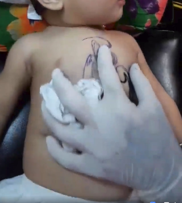 Tartışmalı video kısa bir süre önce sosyal medyada popüler oldu ve oldukça tepki çekti. Söz konusu videoda aile 11-12 aylık olduğu tahmin edilen bebeklerine dövme yaptırıyor.
