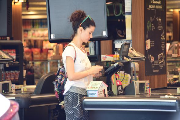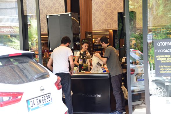 Beren Saat önceki gün Kuruçeşme’deki bir marketten mutfak alışverişi yaptı.