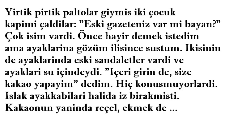 “İyi günler” dileyerek uzaklaşmaya karar verdim. “Belkide yanlış bir soru sormuşumdur. Belki canını sıkmışımdır ya da ne bileyim adam deli işte!” diye geçirdim içimden. “Sen neden burada değilsin?” diye bağırdı arkamdan. Öyle bir bağırdı ki, arkamı dönmeye korktum. Cinnetle bağırır gibi…