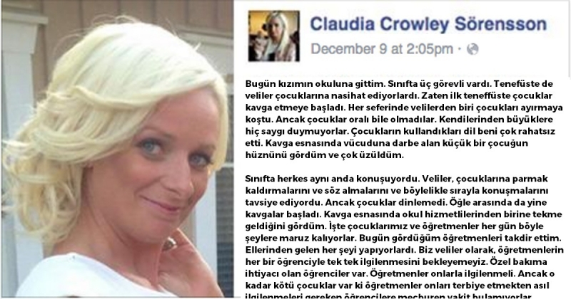 Kızının okuluna giden Claudia Crowley Sörensson gördüğü manzara karşısında çok şaşırdı. Sınıfın içinde ve okulun bahçesinde diğer öğrencilerin yaptıkları hareketler anneyi hem üzdü hem de şaşkına çevirdi.