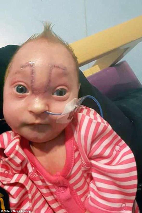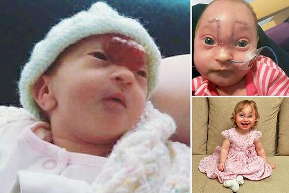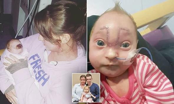 Cerrahlar şu anda 17 aylık olan bebeğin dışarıdaki beynini içeri sokmayı başardılar.