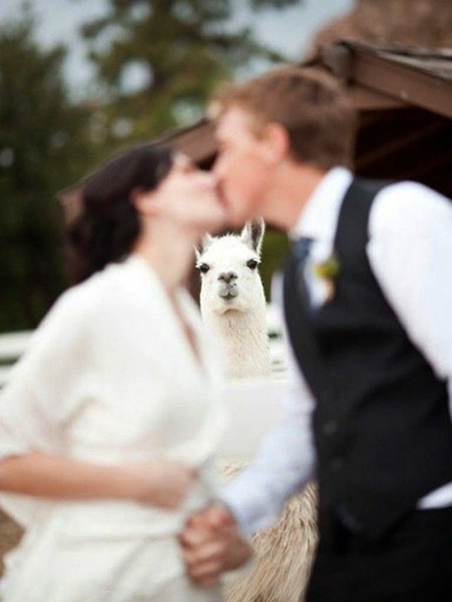 Düğüne davetsiz katılan bir lama en güzel fotoğrafınızın da bir parçası olmak isterse…
