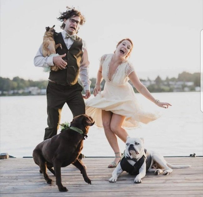 Köpeklerimiz de mutlaka düğün pozumuzda olsun diyen çift zor anlar yaşamış.