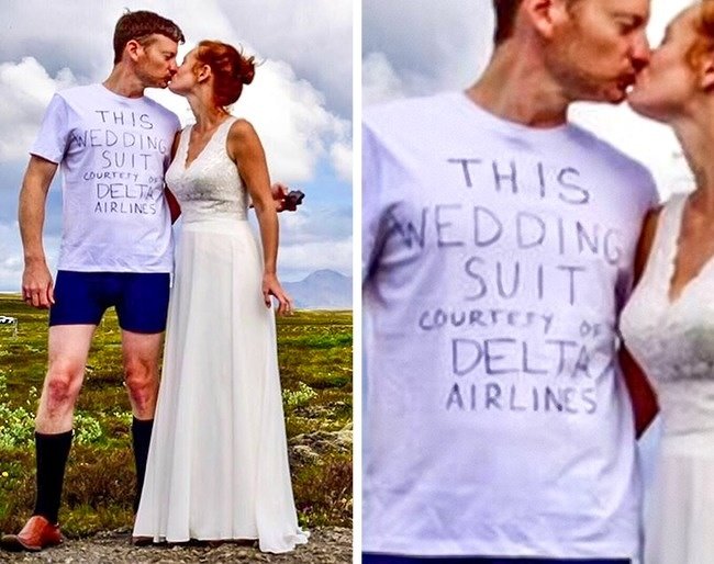 Damat bey damatlığını kaybeden hava yoluna sitem dolu bir mesaj vermiş: “Bu damatlık için Delta Hava Yolları’na çok teşekkürler.”