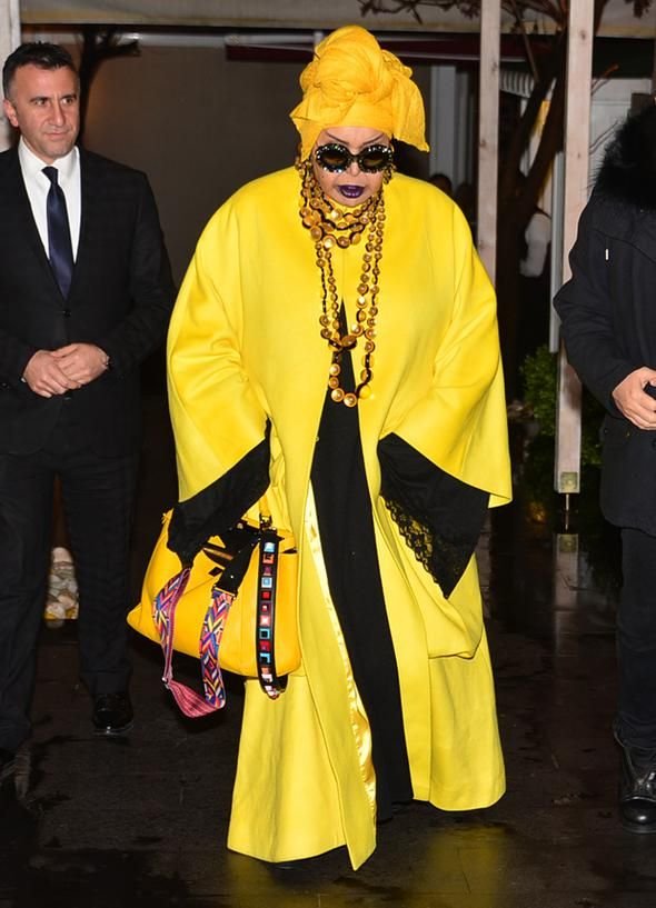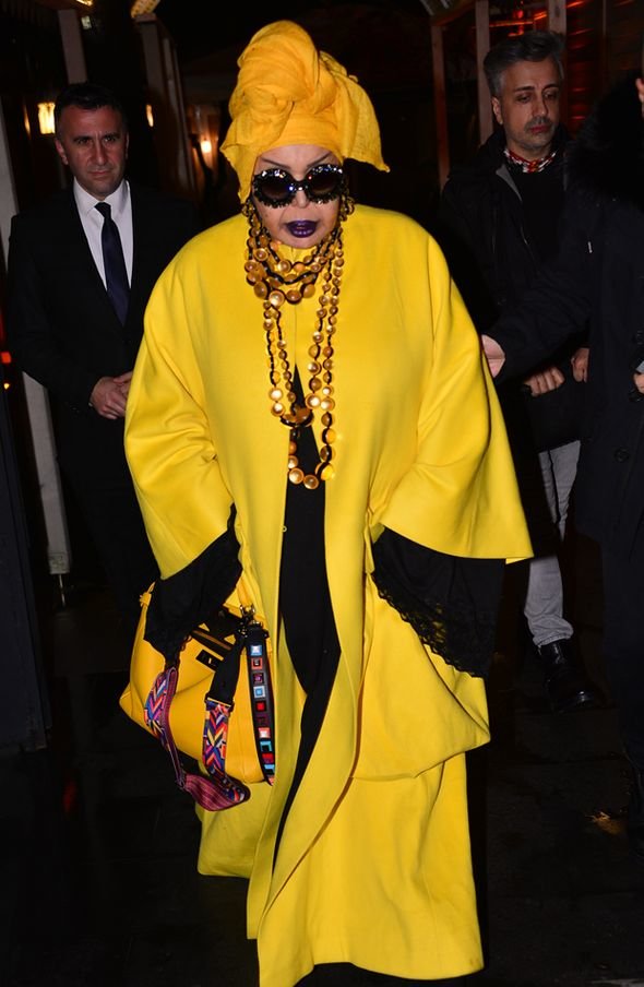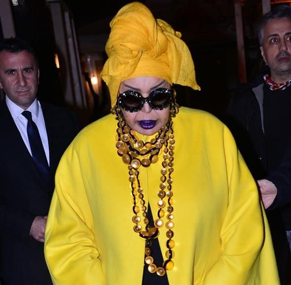 Bülent Ersoy, sohbet eşliğinde geç saatlere kadar süren yemek sonrası kapıda görüntülendi. Sanatçı, sarı paltosu ve aynı tonlardaki aksesuvarlarıyla gecenin karanlığında parladı.