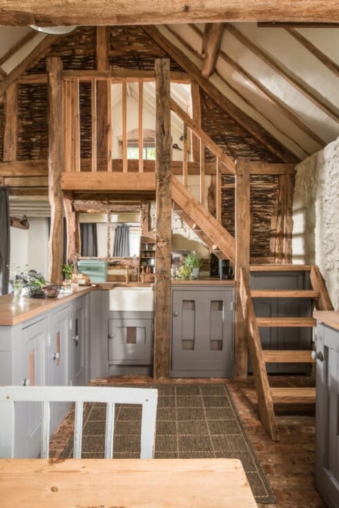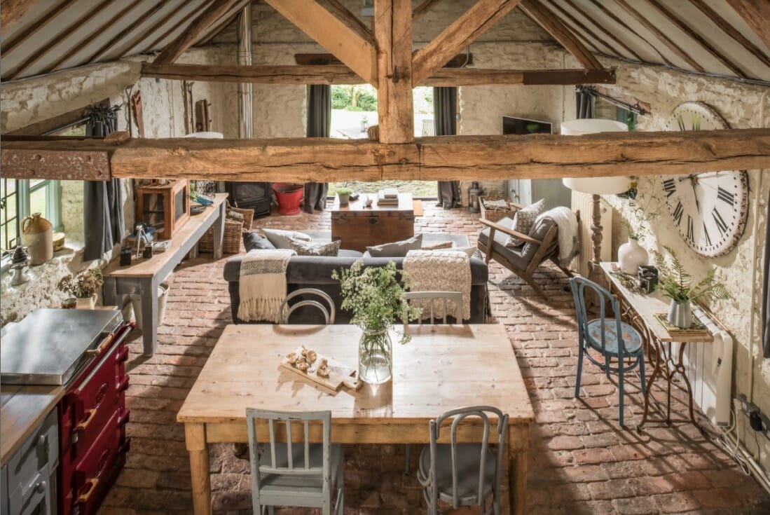 Meyve ağaçları ve balık havuzunun arasında 1400’lü yıllardan kalma, ilk olarak ahır olarak inşa edilmiş ‘Wishbone’ ismindeki kır evi görenleri şaşkına çeviriyor.