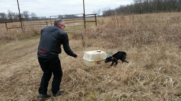 Kafesin içi dışkıyla doluydu. Muhtemelen eski sahibi sıkılıp köpeği kafesin içinde ormana terketmişti.