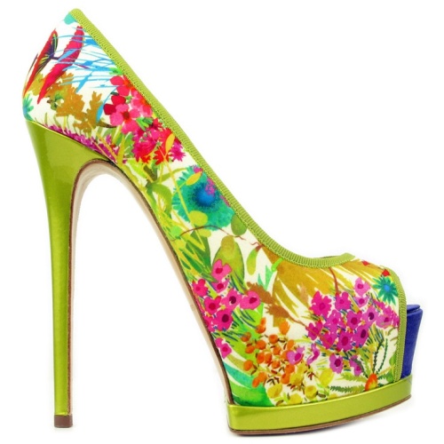 fıstık yeşili çiçek desenli şık platform ayakkabı stilleri