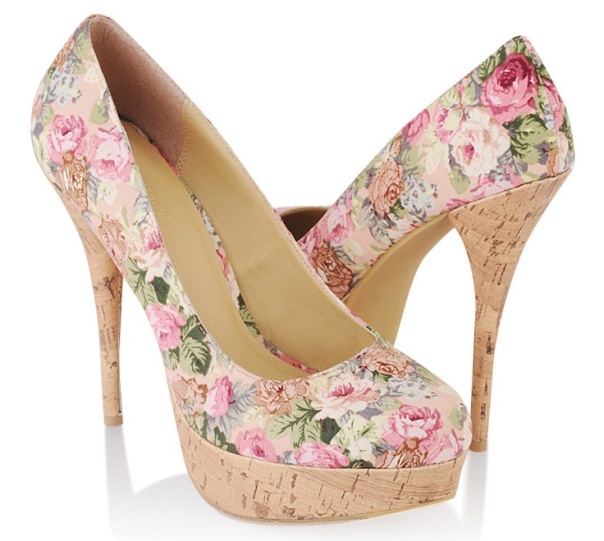 mantar tabanlı çiçek desenli zarif platform ayakkabılar