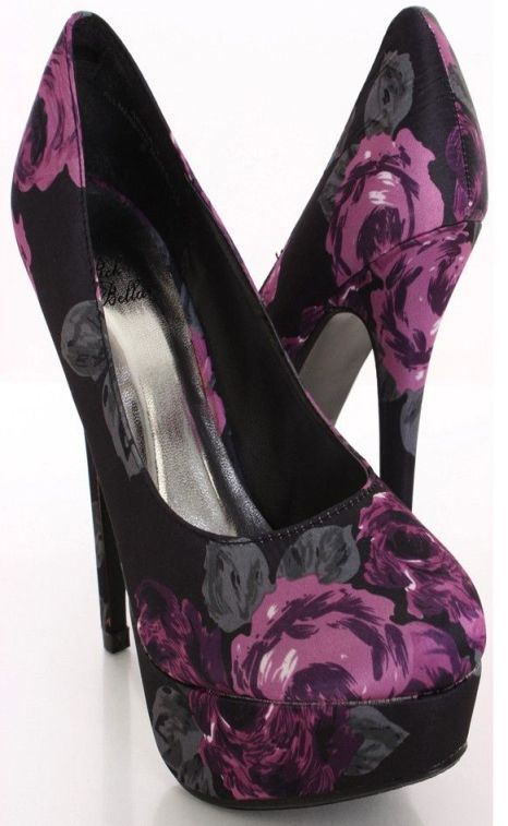 mürdüm tonda gül desenli şık platform ayakkabı çeşitleri