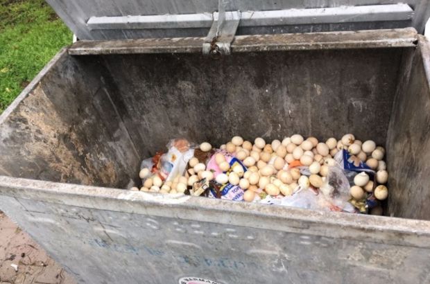 Çöp konteynırında bulunan yumurtalar arasında civciv seslerini duyan ekipler şaşkına döndü.