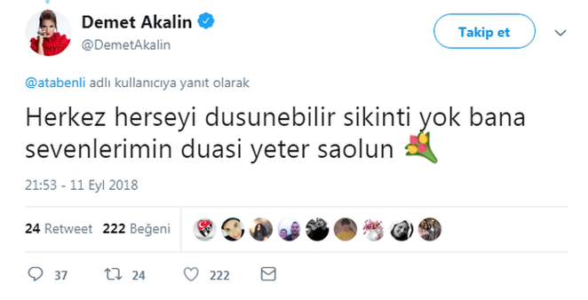 Okan Kurt, çıkışta ”Hayırlısı olsun” diyen bir muhabire ”Ne hayırlısı” sözleriyle tepki gösterdi. ”Boşanmayı sizin istediğiniz doğru mu?” sorusunu ise şöyle cevapladı: ”Yok öyle şey.” Demet Akalın, çıkışta Okan Kurt’la bir araya gelmedi.