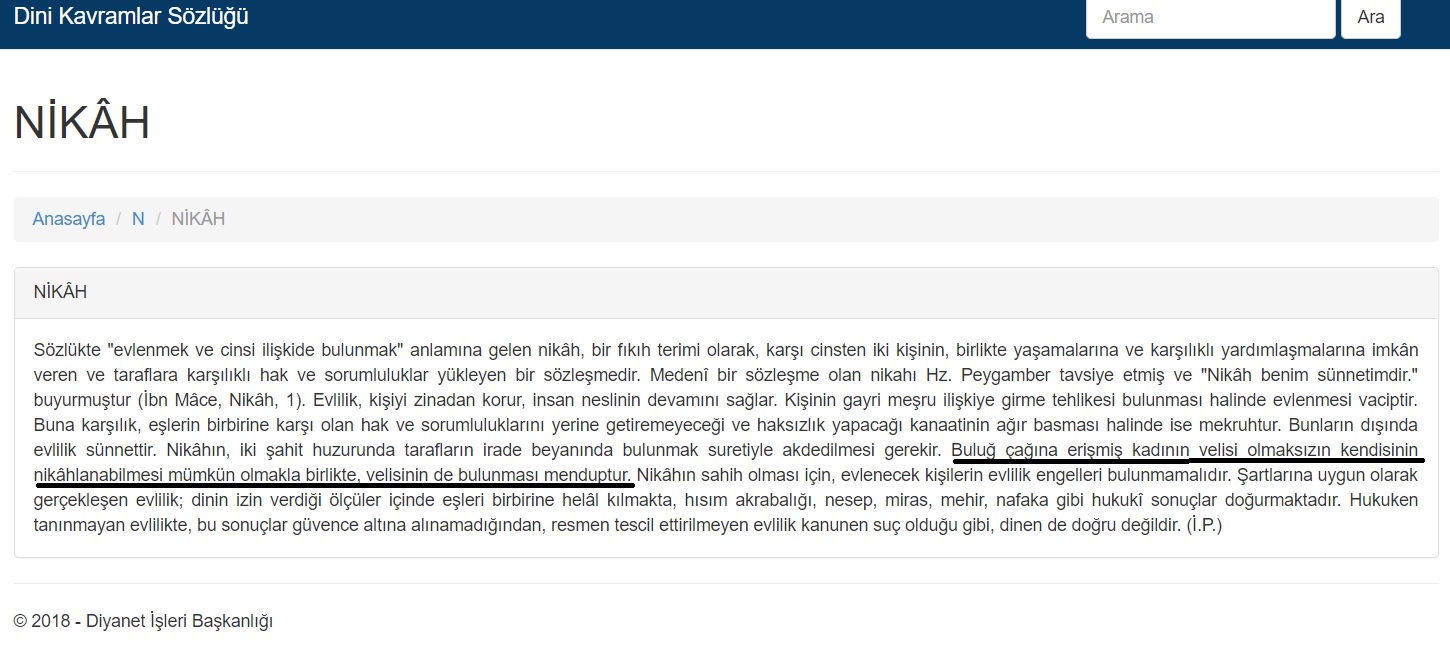Diyanet’in resmi sitesindeki ‘Dini Kavramlar Sözlüğü’ bölümünde ‘bulûğ’ ve ‘nikâh’ kelimelerinin açıklamaları tartışma yaratmıştı.