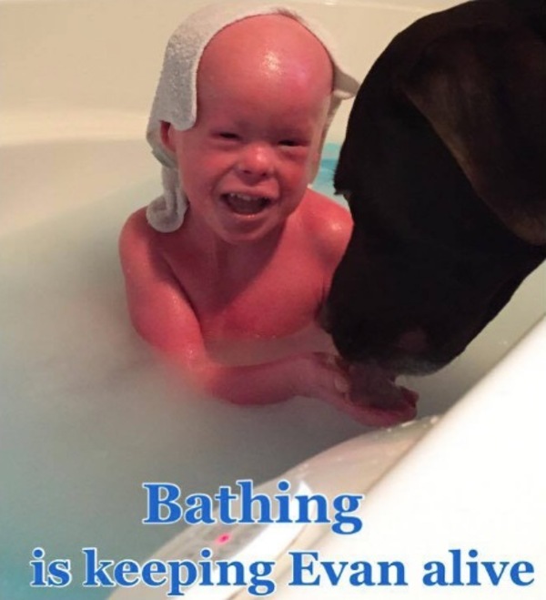 Rahatsızlığı nedeniyle bebeğin günde bir saat boyunca iki günde bir banyo yaptırılması ve böylelikle vücudunun nemlendirilmesi ve rahatsızlığın neden olduğu ölü derilerin temizlenmesi gerekiyordu. Evan’a ayrıca her gün vücudunu nemlendirecek ve enfeksiyon kapmasını önleyecek özel bir krem sürülüyordu. Bunca zorluklara rağmen çocuk ve ailesi içine düştükleri zor duruma göğüs germeyi başarabildiler.