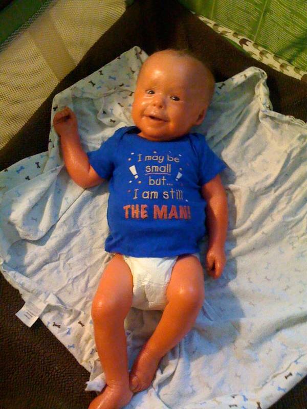 Evan, 9 Haziran 2010 tarihinde dokuz ay erken dünyaya geldi. Doğumundan iki gün önce doktorlar, bebeğin Harlequin tipi iktiyozis rahatsızlığı olduğu konusunda uyardı. Harlequin tipi iktiyozis, deride oluşacak rahatsızlıkların 14 kat daha hızlı gelişmesine neden olan bir sendromdur.