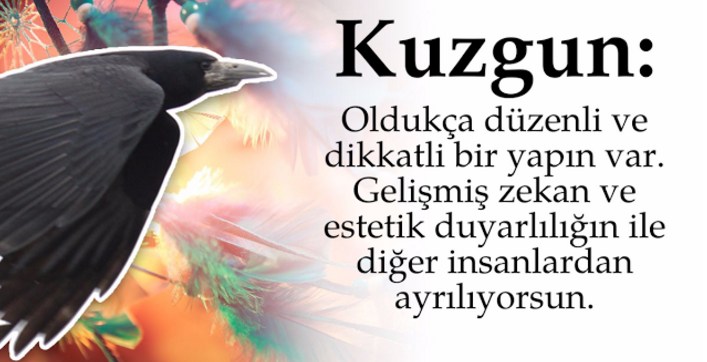 KUZGUN: Oldukça düzenli ve dikkatli bir yapın var. Gelişmiş zekan ve estetik duyarlılığın ile diğer insanlardan ayrılıyorsun.