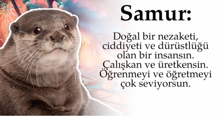 SAMUR: Doğal bir nezaketi, ciddiyeti ve dürüstlüğü olan bir insansın. Çalışkan ve üretkensin. Öğrenmeyi ve öğretmeyi çok seviyorsun.