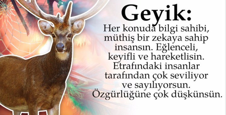 GEYİK: Her konuda bilgi sahibi,müthiş bir zekaya sahip insansın.Eğlenceli,keyifli ve hareketlisin. Etrafındaki insanlar tarafından çok seviliyor ve sayılıyorsun. Özgürlüğüne çok düşkünsün