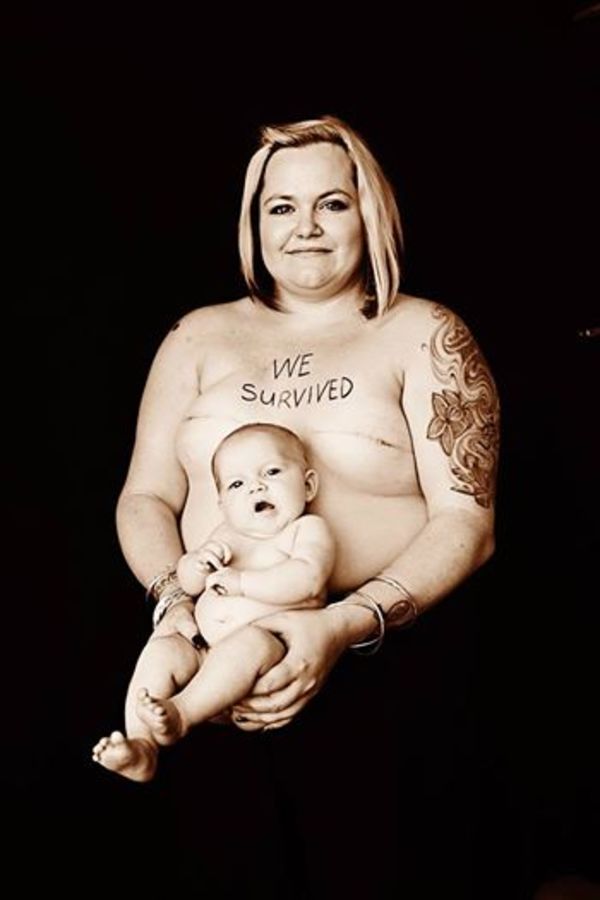 Diğer kadınları da asla vazgeçmemeye teşvik etmek için, Kimi siyah-beyaz fotoğraflar çektirip paylaştı. Fotoğrafta sadece ameliyat izleri değil aynı zamanda hamileliğinin kanıtları da yer alıyordu.