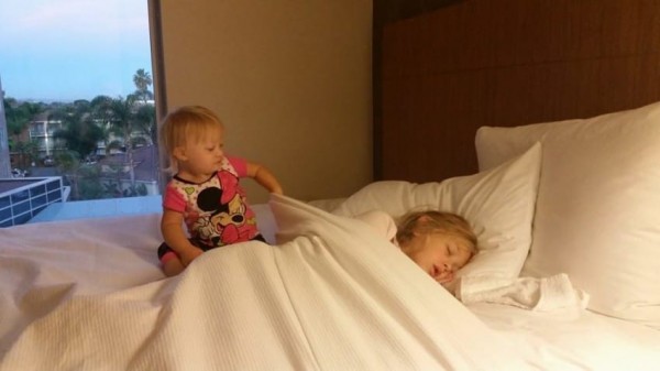 Aile hep beraber Disney World’e gitmeye karar verdi. Aşağıdaki fotoğrafta Delaney, ablasını Disney’e gitmek için uyandırmaya çalışıyor.